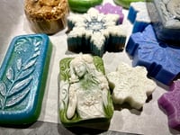 What is glycerin, anyway? Glycerin is a great humectant, a natural byproduct of saponification, and is one reason why soap works so well at simultaneously cleansing and moisturizing your skin. Soap called “glycerin soap” is made with extra glycerin so it can be molded into smooth, shiny soap with complex details. If you see clear or translucent soap, that is glycerin soap! My soap labeled “glycerin soap” is made with high-quality bases that use as many organic and natural ingredients as possible. My soap never contains harsh synthetic detergents, SLS, parabens, or phthalates. Instead, I love making soap that has more natural ingredients like oatmeal, honey, lilac-infused organic olive oil, goat milk, organic fruit purees, and herbal extracts!