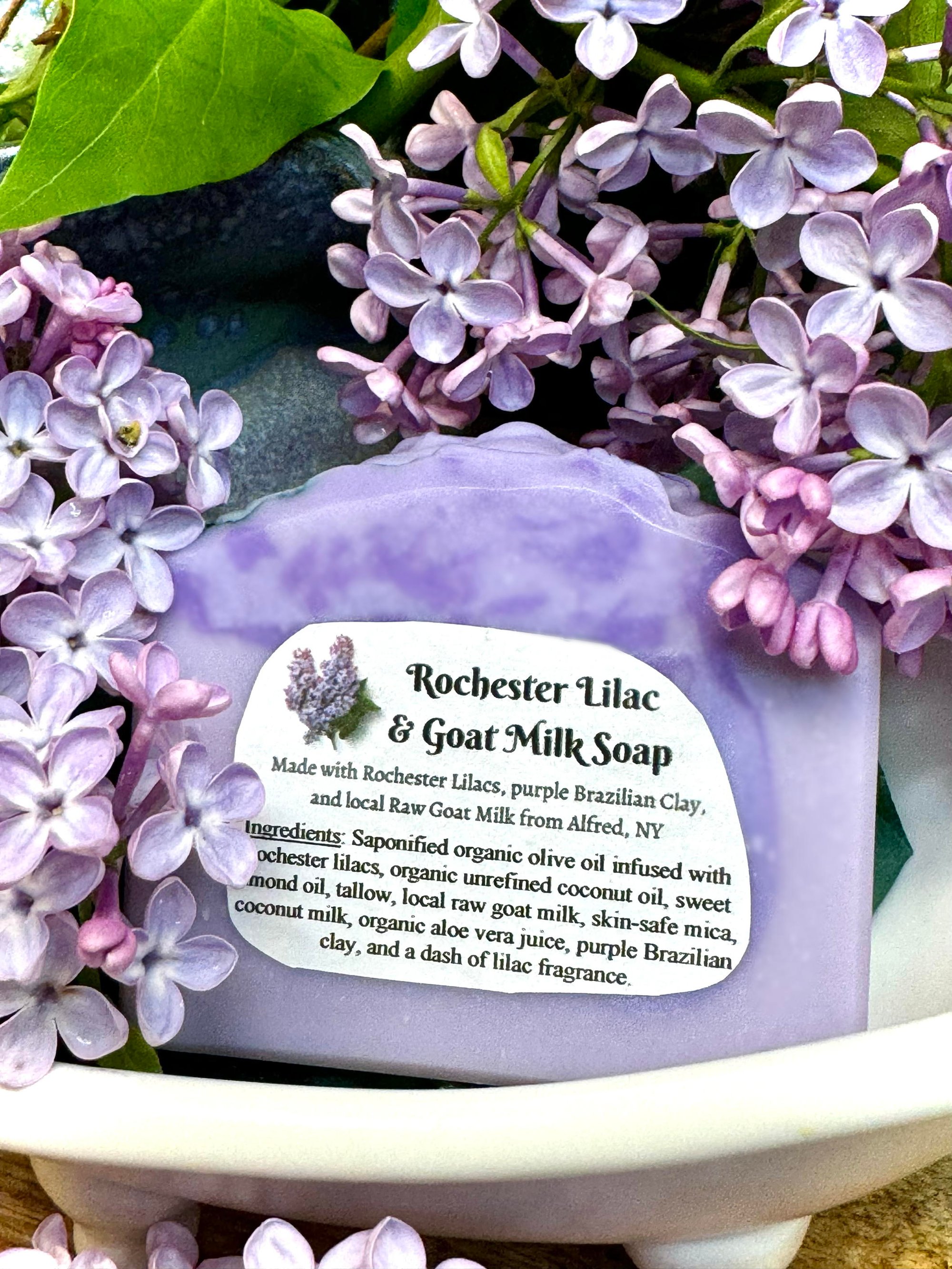 Made with goat milk and organic olive oil infused with lilacs from my yard, this soap is creamy and soft on your skin. Lilacs are the scent of spring in Rochester, and I love how this soap captures the uplifting scent of lilacs that permeate the air in May!